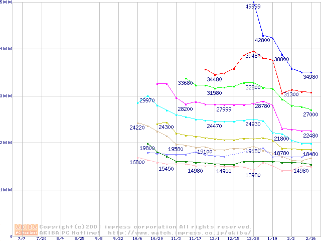 Socket A (Palomino,OPGA,FSB 266MHz,L2 256KB)の最安値推移