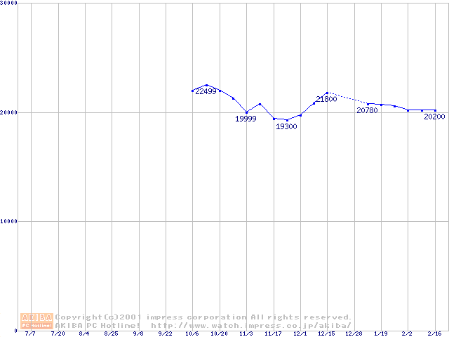 | [↑前グラフ]: | Barracuda ATA IV (7200rpm,UltraATA/100 2MB 40GB/Platter,流体軸受)の最安値推移 |