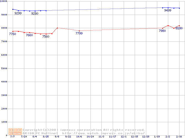 | [↓次グラフ]: | Deskstar 120GXP (7200rpm,UltraATA/100 2MB)の最安値推移 |