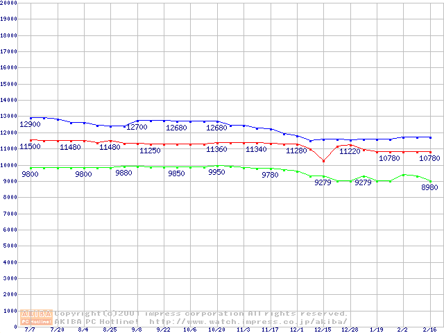 | [↓次グラフ]: | WD Caviar (5400rpm,UltraATA/100)の最安値推移 |