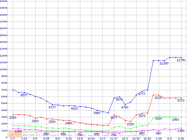 | [↓次グラフ]: | PC133 SDRAM DIMM CasLatency=2の最安値推移 |