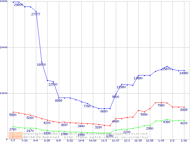 PC2100(DDR266) DDR SDRAM DIMM(CL 2.0)の最安値推移