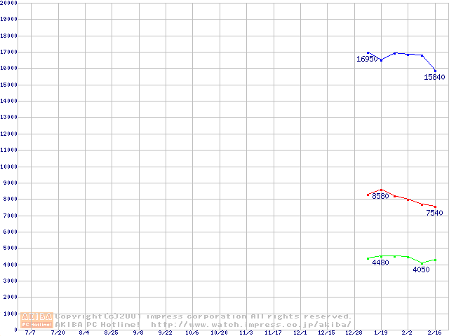 | [↓次グラフ]: | PC2700(DDR333) DDR SDRAM DIMMの最安値推移 |