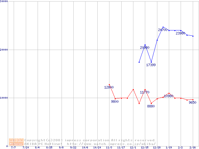 | [↓次グラフ]: | PC2100(DDR266) DDR SDRAM DIMM ECC対応 Registeredタイプの最安値推移 |