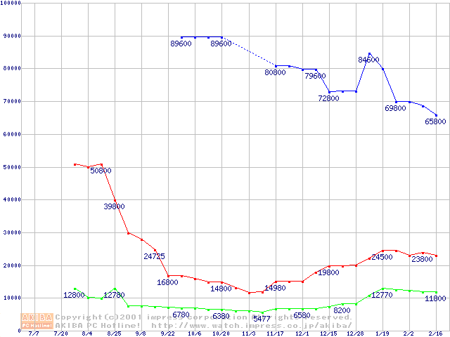 | [↑前グラフ]: | PC2700(DDR333) DDR SDRAM DIMMの最安値推移 |