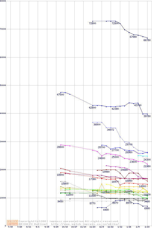 2.5インチHDD 60GB~80GB未満(12.5mm厚)の最安値推移