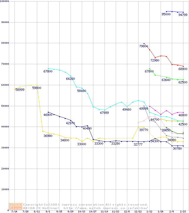 CPU主要製品(最安値2万円~3万円未満)の最安値推移