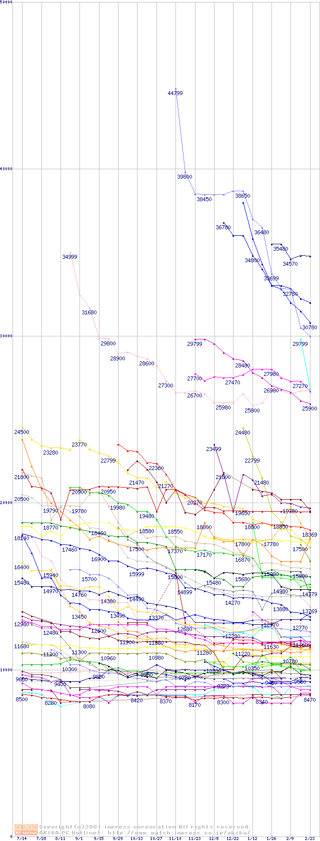 HDD主要製品の最安値推移