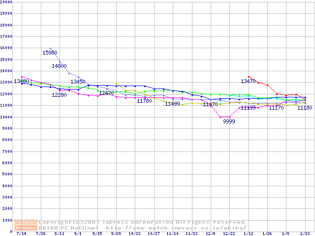 | [↓次グラフ]: | HDD 60GB~80GB未満(7200rpmクラス)の最安値推移 |