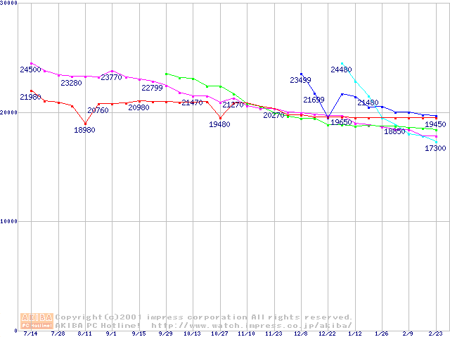 | [↓次グラフ]: | HDD 100GB以上(7200rpmクラス)の最安値推移 |