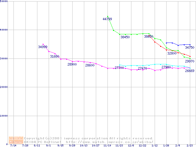 メモリ主要製品の最安値推移