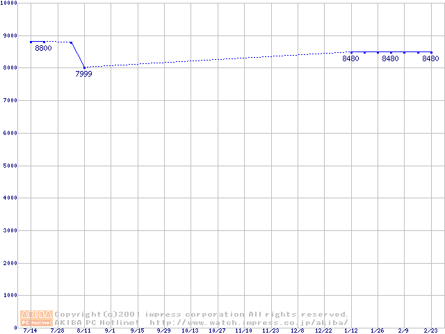 HDD 10GB~20GB未満(5400rpmクラス)の最安値推移