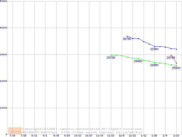 | [↓次グラフ]: | HDD 10GB~20GB未満(7200rpmクラス)の最安値推移 |
