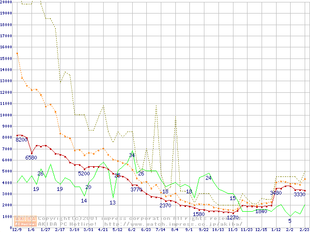 PC133 SDRAM DIMM CasLatency=2の最安値推移