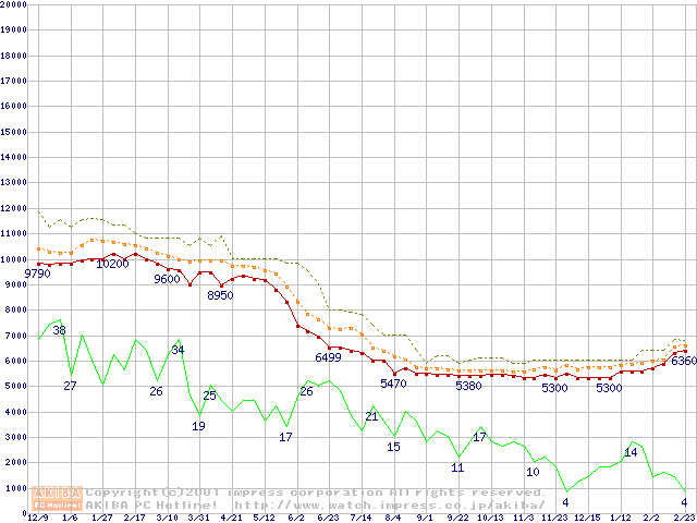 Celeron 700MHz FC-PGA リテールパッケージの価格推移