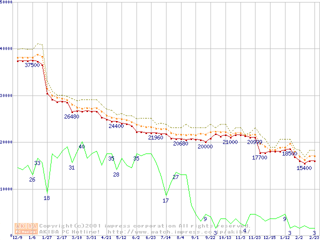 Pentium III 933MHz FC-PGA リテールパッケージの価格推移