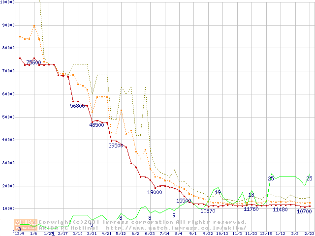メモリ主要製品の最安値推移