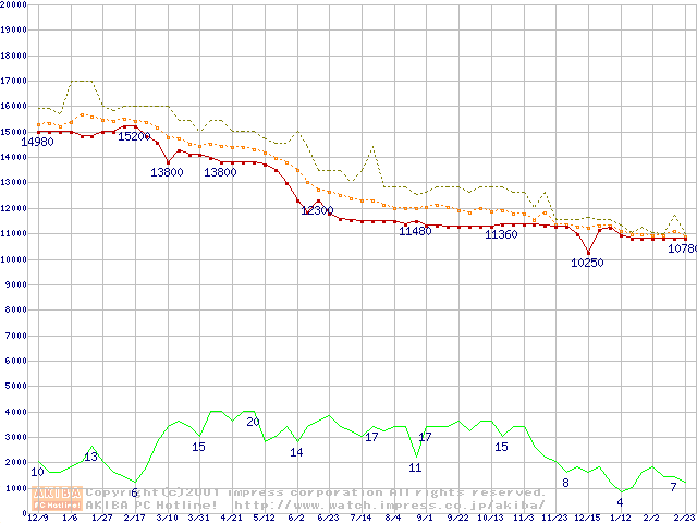 WD Caviar (7200rpm,UltraATA/100,20GB/Platter)の最安値推移