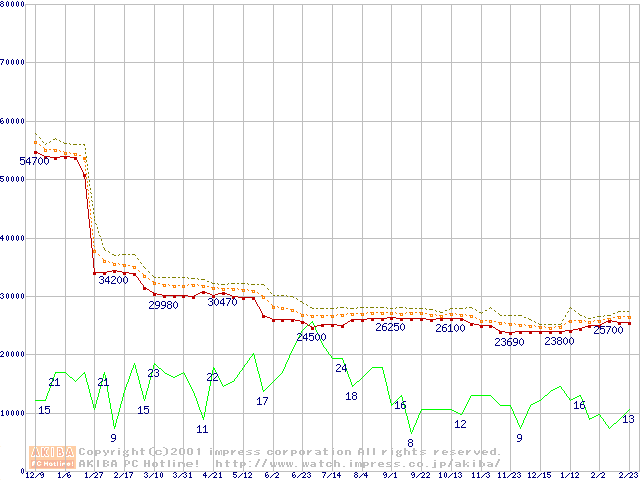 Pentium III 1GHz SECC2 リテールパッケージの価格推移