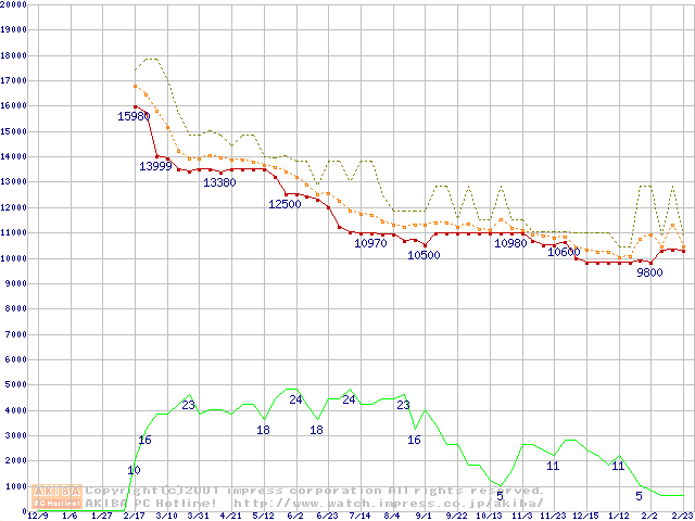 WD Caviar (5400rpm,UltraATA/100)の最安値推移