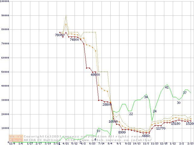 メモリ主要製品の最安値推移