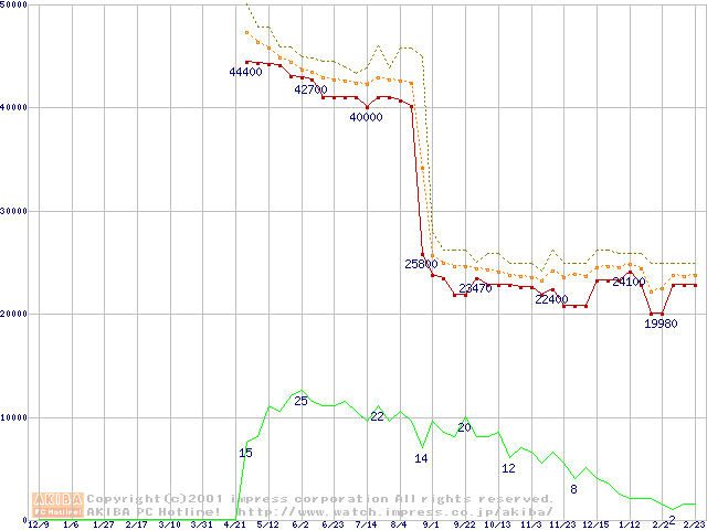 Socket 423 (PGA,L2 256KB)の最安値推移