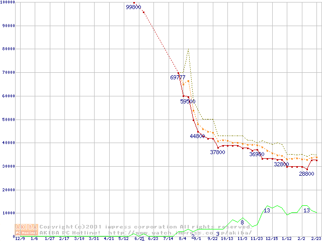 PC800 DRDRAM RIMMの最安値推移