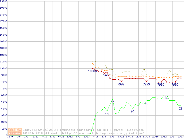 HDD 20GB~30GB未満(5400rpmクラス)の最安値推移