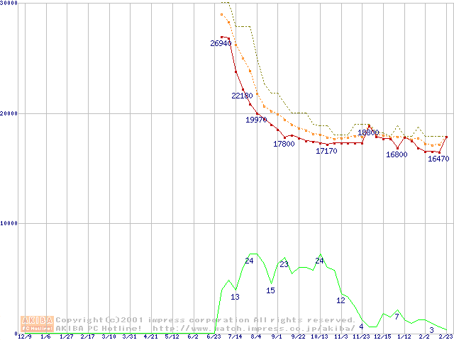 DiamondMax D540X (5400rpm,UltraATA/100,40GB/Platter)の最安値推移