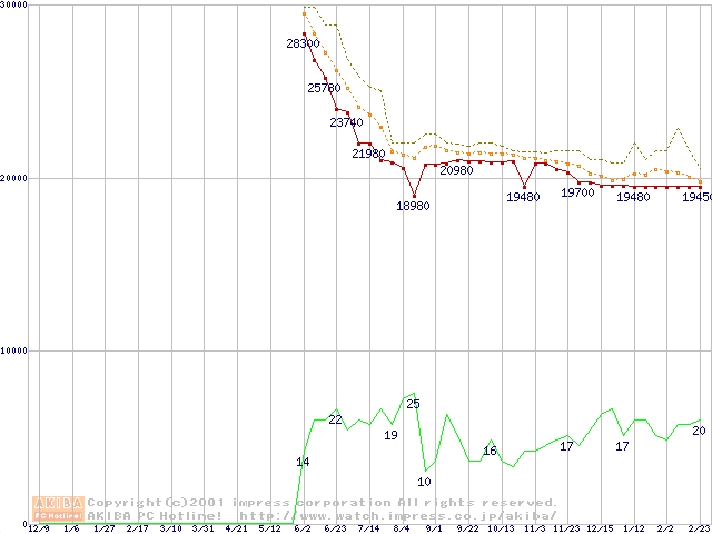 WD Caviar (7200rpm,UltraATA/100,2MB)の最安値推移