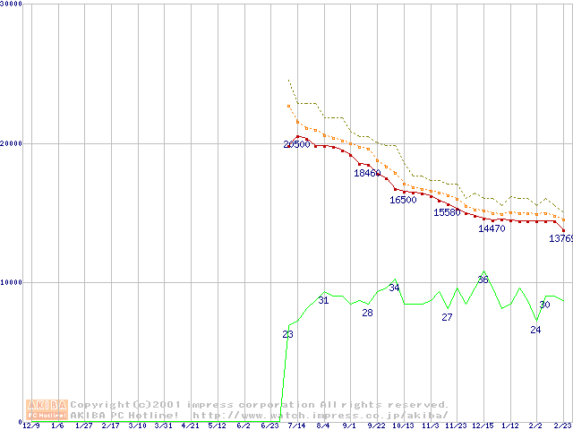 Barracuda ATA IV (7200rpm,UltraATA/100 2MB 40GB/Platter,流体軸受)の最安値推移
