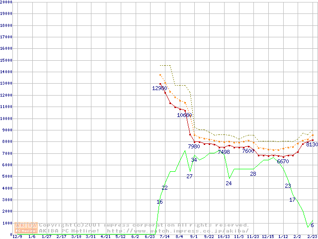 Celeron 900MHz FC-PGA リテールパッケージの価格推移