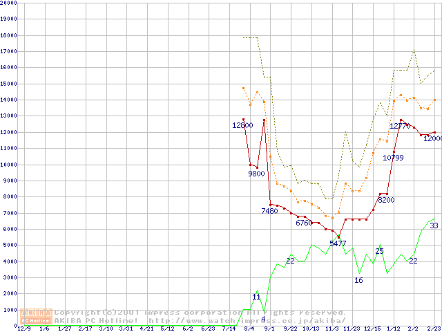 メモリ主要製品の最安値推移