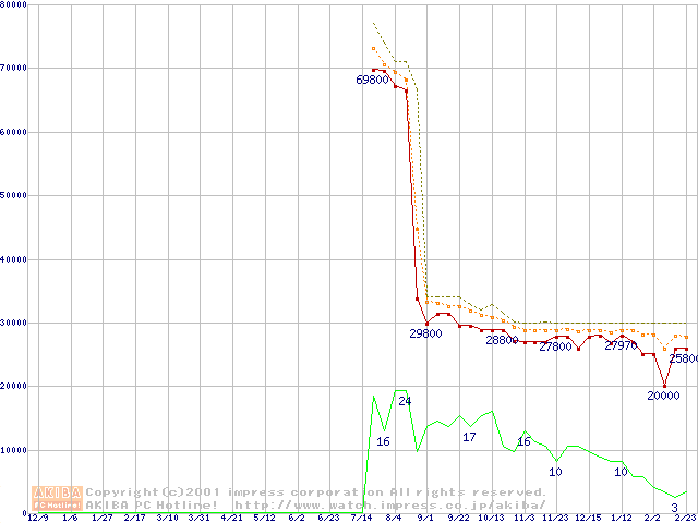 Pentium 4 1.80GHz(423pin)リテールパッケージ(RIMMなし)の価格推移
