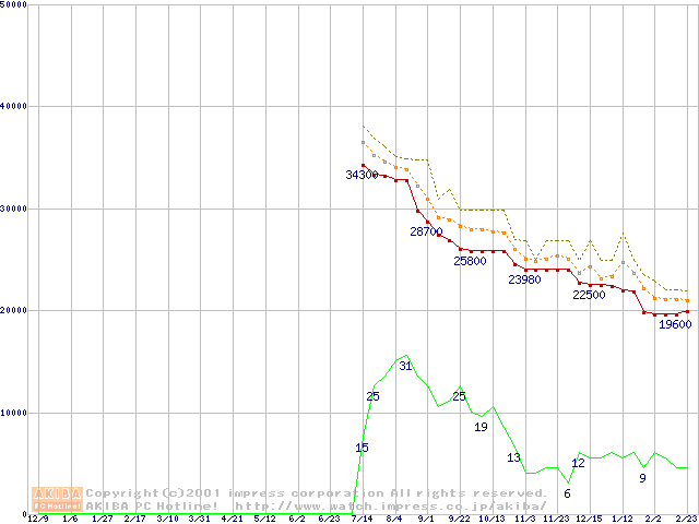 Pentium III 1.13AGHz FC-PGA2 リテールパッケージの価格推移
