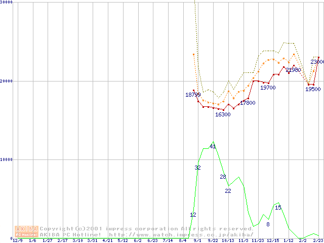 Socket 478 (micro-PGA,L2 256KB,Willamette)の最安値推移