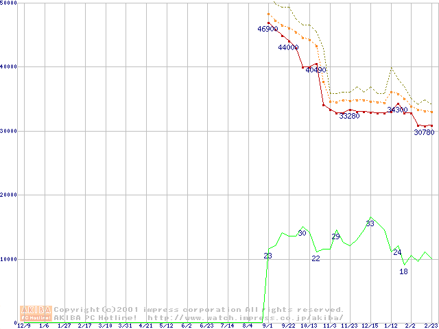 Socket 478 (micro-PGA,L2 256KB,Willamette)の最安値推移