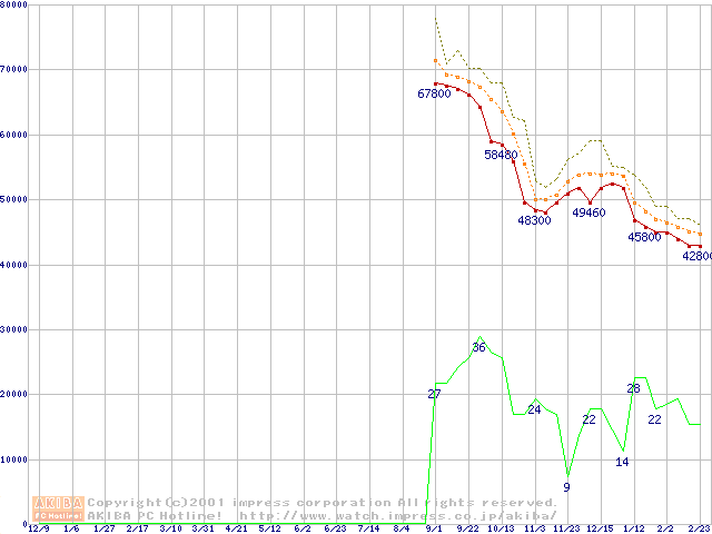 Socket 478 (micro-PGA,L2 256KB,Willamette)の最安値推移