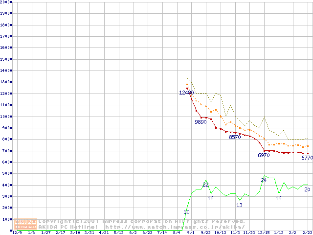 Socket A (Morgan,PGA,FSB 200MHz,L2 64KB)の最安値推移