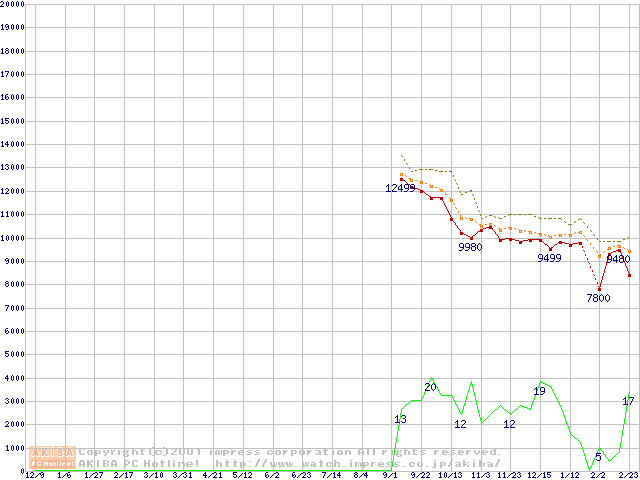 Duron 1GHz リテールパッケージの価格推移