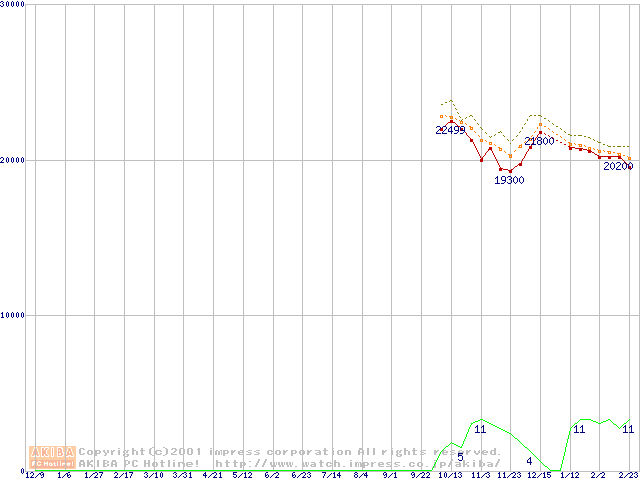 U6 (5400rpm,UltraATA/100 2MB 40GB/Platter,流体軸受)の最安値推移