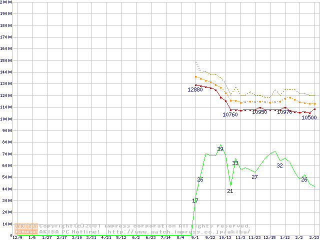Celeron 1.10GHz FC-PGA リテールパッケージの価格推移