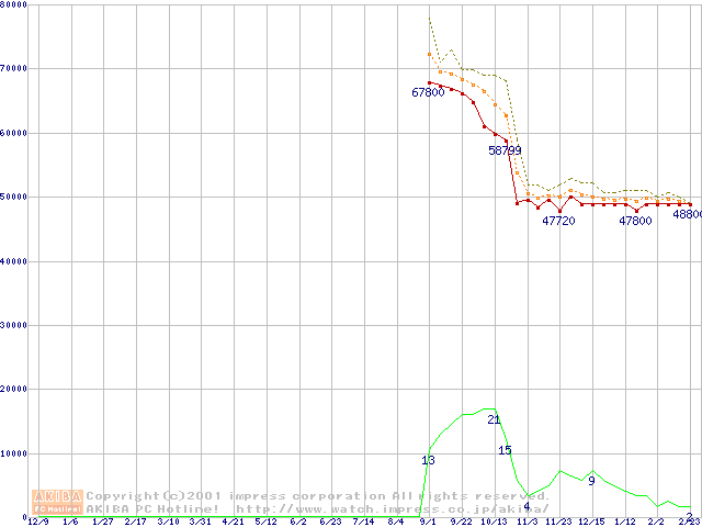 Pentium 4 2GHz(423pin)リテールパッケージ(RIMMなし)の価格推移