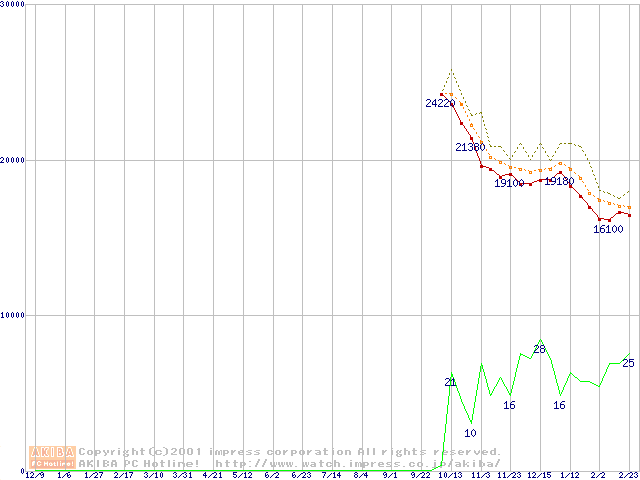 Socket A (Palomino,OPGA,FSB 266MHz,L2 256KB)の最安値推移