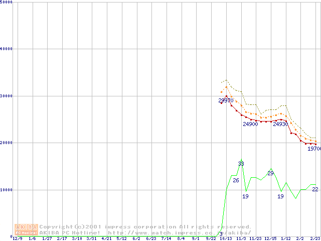 Socket A (Palomino,OPGA,FSB 266MHz,L2 256KB)の最安値推移
