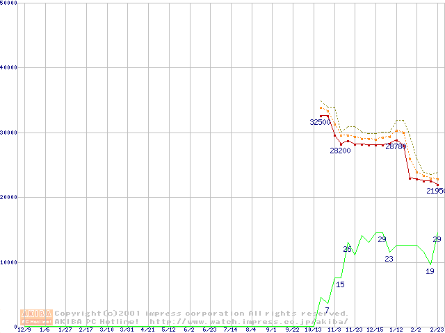 Athlon XP 1800+ (1.53GHz) リテールパッケージの価格推移