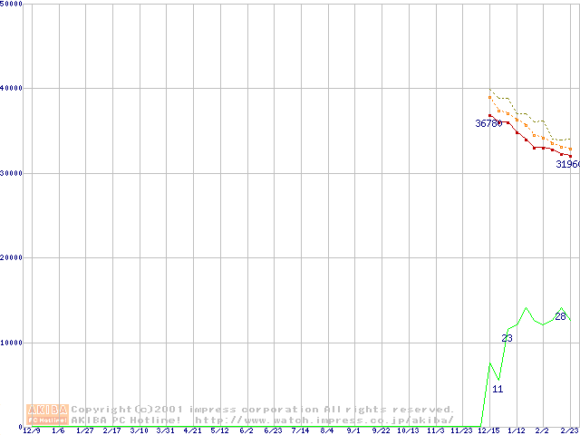 DiamondMax D540X (5400rpm,UltraATA/133,40GB/Platter)の最安値推移