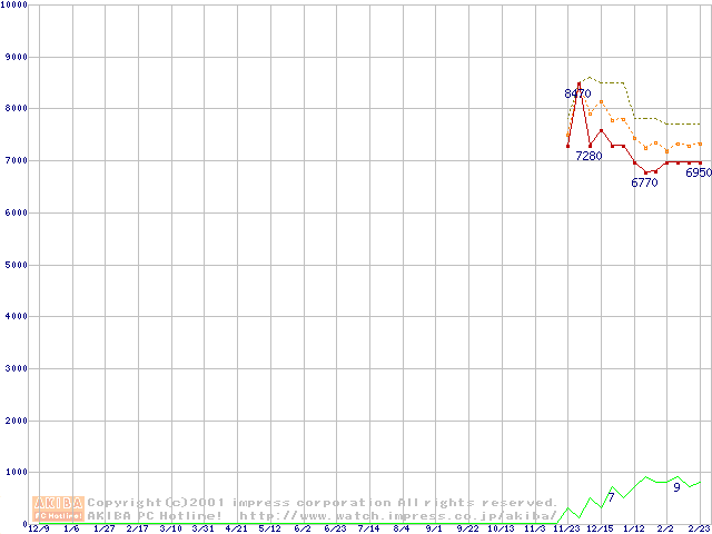 Socket 370 (PGA,FSB 133MHz,L2 64KB)の最安値推移