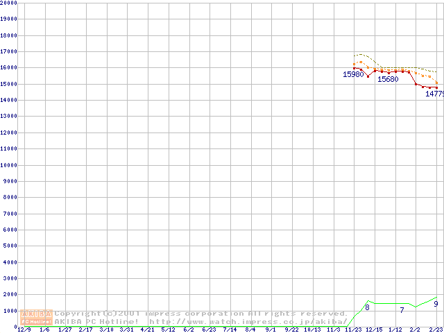 HDD主要製品(最安値1万円~1万5千円未満)の最安値推移