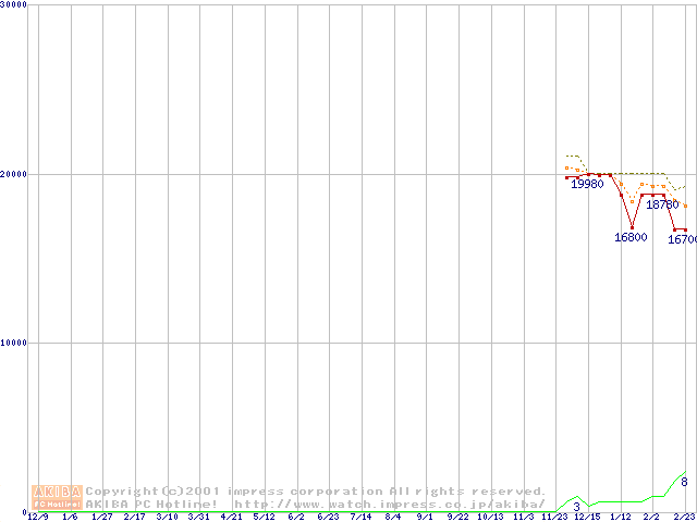 MHNシリーズ (9.5mm,4200rpm,UltraATA/100,2MB)の最安値推移